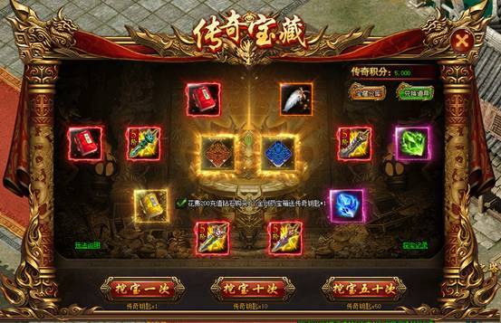 (3)每挖宝一次可获得1点传奇积分,可在用来兑换道具