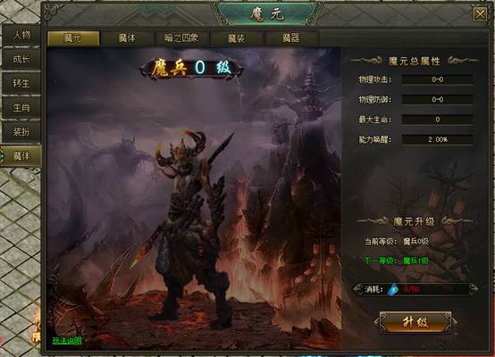 (3)在魔界地图内,角色属性只有生命、物理攻击、防御、神圣攻击、神圣防御按一定%生效,提升魔元等阶可提升生效比例