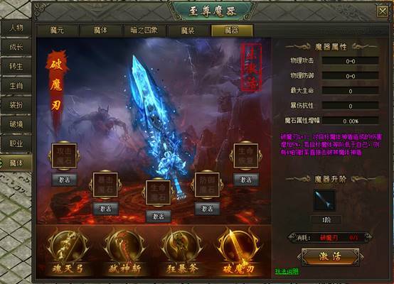 (1)玩家等级达到450级且魔体达到魔将阶,可通过“人物-魔体-至尊魔器”页签打开