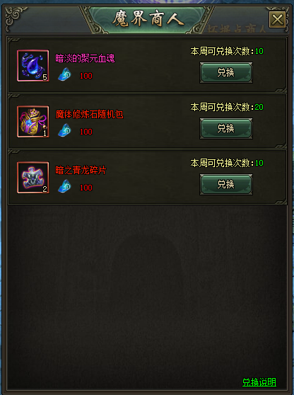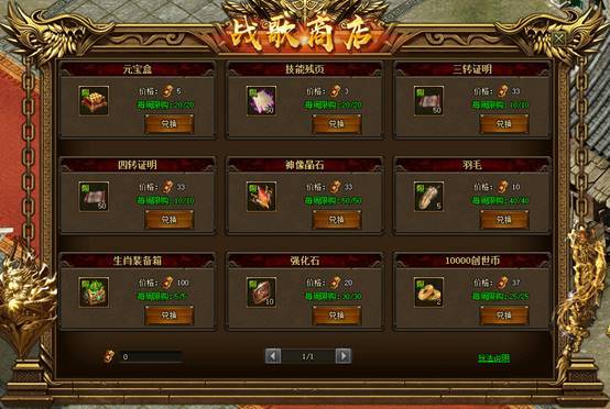 (2)商店内道具有兑换次数限制,每周一重置次数