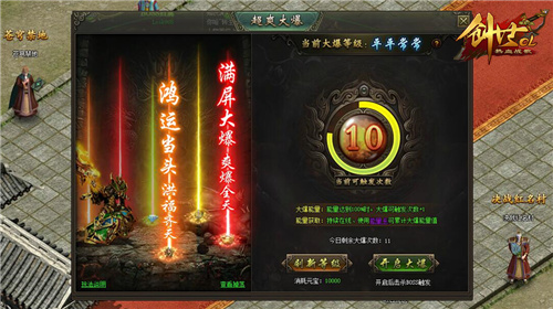 开启大爆后,击杀激战BOSS里的任意BOSS均可触发,大爆物品只有自己可见,超过存在时间或者离开当前地图则物品消失,提高VIP等级可增加每日大爆次数。