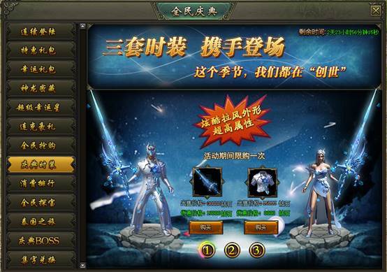 活动说明:活动期间,绝版时装限时出售,炫酷拉风外型、超高属性都在这里!