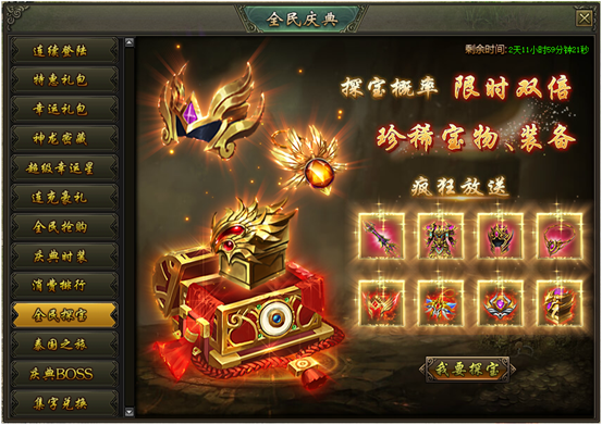 活动说明:活动期间,龙之宝藏产出圣装及魔装的概率限时翻倍,极品圣装、高级神饰大放送!