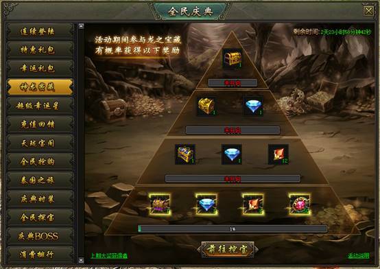 活动说明:活动期间,参与龙之宝藏将有几率获得神龙密藏奖励
