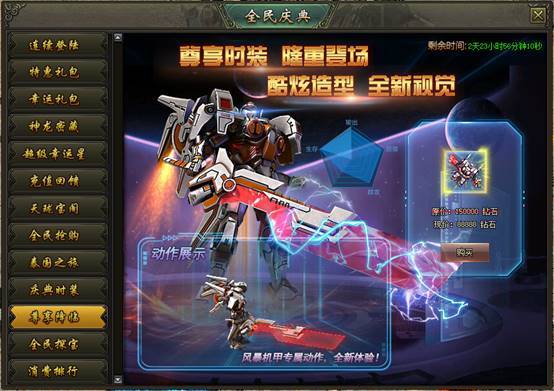 活动说明:活动期间,消费达到300000钻石的玩家参与排行,排名前三的玩家可获得珍贵装备、稀有道具等奖励,奖励在活动结束后以邮件的方式进行发放