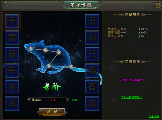 (2) 打开方式:功能开启后,在生肖面板点击星魂唤醒按钮