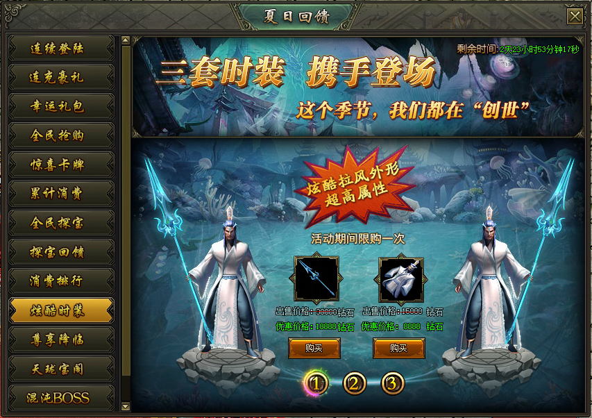 活动说明:活动期间,绝版时装限时出售,炫酷拉风外型、超高属性都在这里!