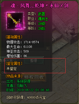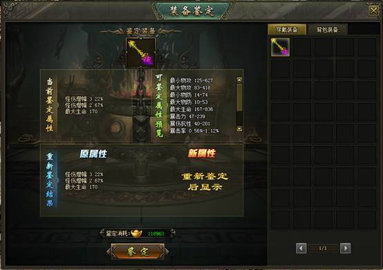 (1)魂装合成后获得的可鉴定属性,需前往封魔古都NPC装备鉴定师处进行鉴定