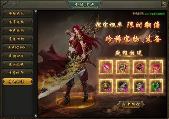 活动说明:活动期间,龙之宝藏产出圣装及神饰的概率限时翻倍,极品圣装、高级神饰大放送!