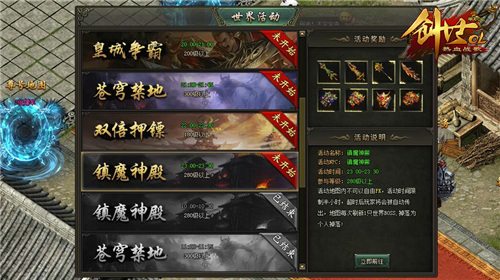 进入镇魔神殿有两个条件,首先需要角色等级达到280级以上才能进入战场,其次就是时间限制,每天两个时段开启,分别是早10:00-10:30以及晚上23:00-23:30,时间持续半小时。在这半小时之内,玩家需要将5000级的混沌BOSS击败,但其BOSS血量非常雄厚,建议多名玩家组队前往,传送到镇魔神殿只是到达,需要小碎步前往正主之位,到了位置以后直接选择挂机,就可以精准瞄准BOSS进行攻击。若30分钟没有将BOSS击杀,BOSS将流窜出逃,同时奖励也将付诸东流。