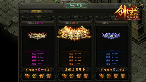 沙城争霸是各大帮会角逐实力的最强舞台。想要在360《热血战歌创世》名声响彻四方,获得大批优质战士的入驻,没点实力是不行的,因此就需要在沙城争霸上决出真正的胜负。每周三、周六晚20:00-21:00期间沙城争霸准时启动(首次开服及合服开启时间与常规不同,请留意活动面板)。取得前三名胜利的帮会可在沙城争霸首页面板进行展示,同时还会赢取超丰厚的奖励,享受名利双收!
