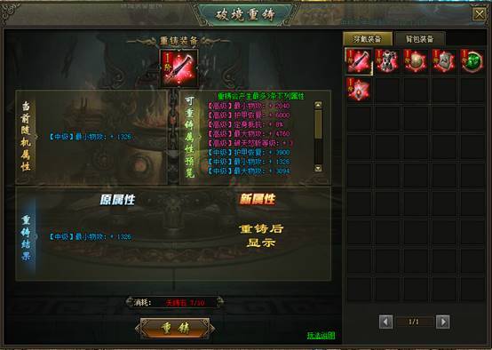 (2)极品、传说、完美品质的装备可进行重铸,重铸需消耗天铸石