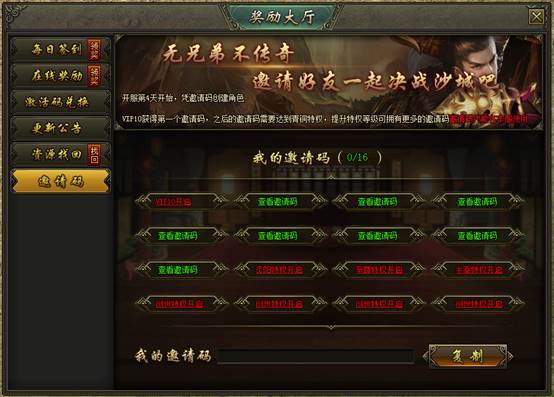 (3)每个角色最多可拥有16个邀请码,且每个邀请码只可使用1次