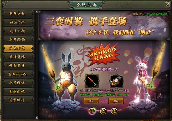 活动说明:活动期间,绝版时装限时出售,炫酷拉风外型、超高属性都在这里!