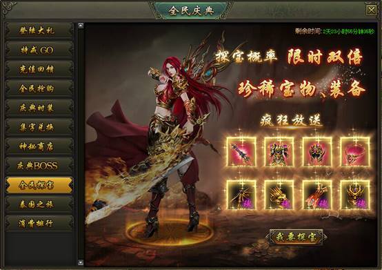 活动说明:活动期间,龙之宝藏产出圣装及神饰的概率限时翻倍,极品圣装、高级神饰大放送!