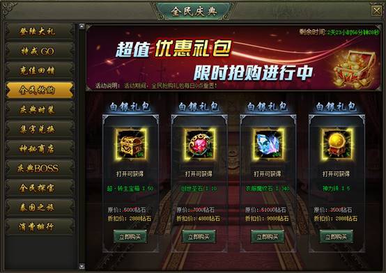 活动说明:活动期间,推出特价商品,每隔两小时自动刷新一次,玩家也可使用钻石进行手动刷新