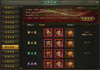 活动说明:活动期间,消费达到300000钻石的玩家参与排行,排名前三的玩家可获得珍稀道具、神魄卷轴自选箱等奖励,奖励在活动结束后以邮件的方式进行发放