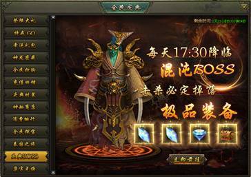 活动说明:活动期间,每天18:00混沌魔殿入口限时开启,全服玩家合力击败2大混沌BOSS,有机会获得海量元宝、钻石、稀有材料及高级装备奖励