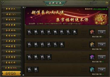 活动说明:活动期间,击杀BOSS概率掉落集字道具,集齐对应组合即可领取奖励