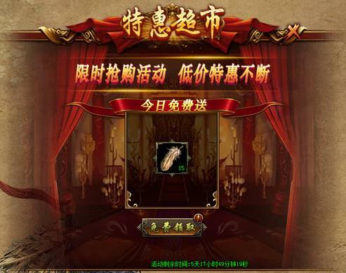 (3)每天可免费从特惠超市中领取1次奖励,并可花费钻石购买2次礼包