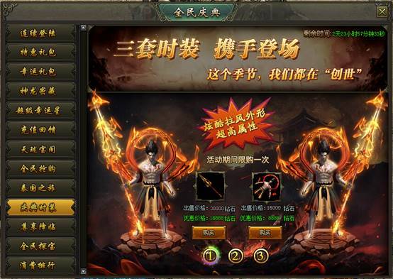 活动说明:活动期间,绝版时装限时出售,炫酷拉风外型、超高属性都在这里!