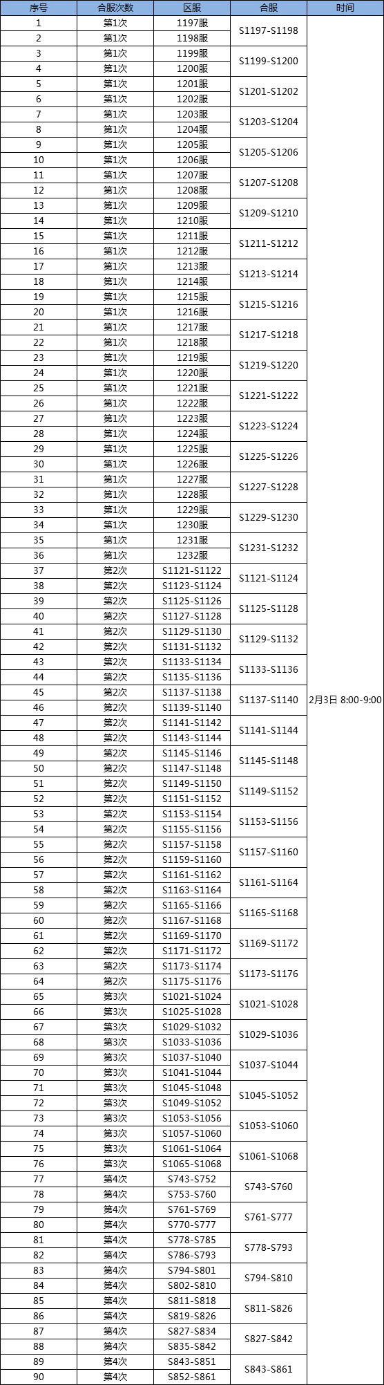 合服时间:2月3日 8:00-9:00