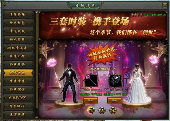 活动说明:活动期间,绝版时装限时出售,炫酷拉风外型、超高属性都在这里!