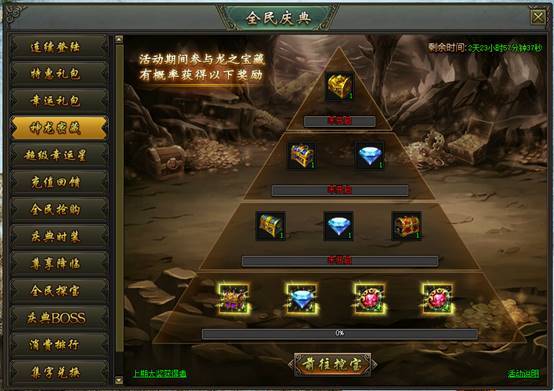 活动说明:活动期间,参与龙之宝藏将有几率获得神龙密藏奖励