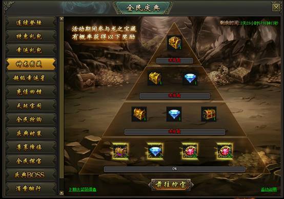 活动说明:活动期间,参与龙之宝藏将有几率获得神龙密藏奖励