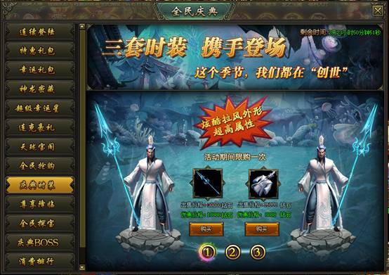活动说明:活动期间,绝版时装限时出售,炫酷拉风外型、超高属性都在这里!