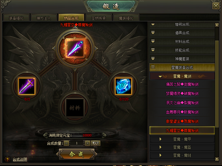 (1)4阶及以上星魔装备可在【锻造-物品合成】中进阶