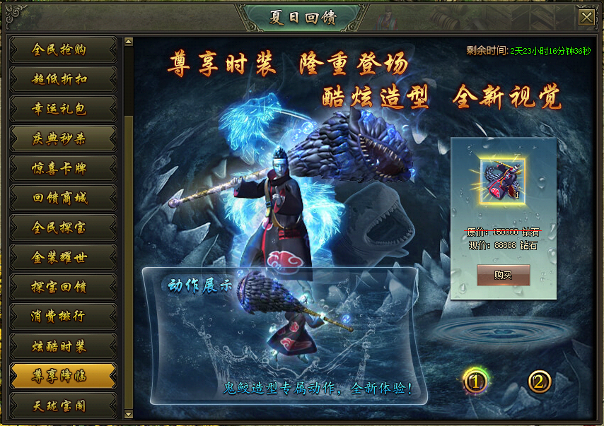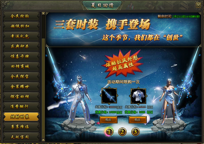 活动说明:活动期间,绝版时装限时出售,炫酷拉风外型、超高属性都在这里!