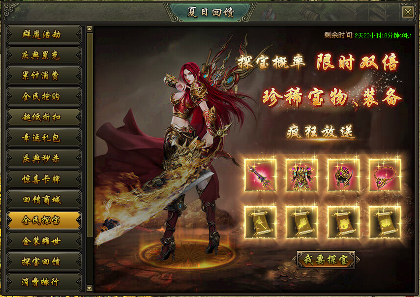 活动说明:活动期间,龙之宝藏产出圣装的概率限时翻倍,极品圣装、珍稀宝物大放送!