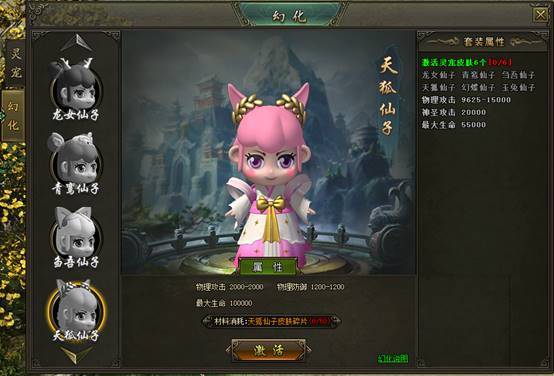 (3)集齐一定数量的皮肤碎片可激活对应的灵宠皮肤形象,并增加大量属性