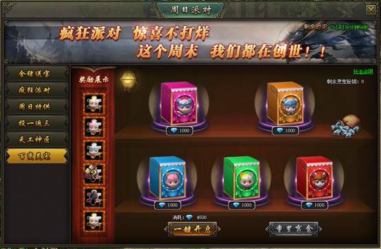(1)开启条件:开服天数≥8天的区服,每周日开启
